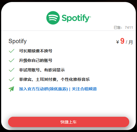 Spotify会员等多种国际流媒体会员账号,并轻松管理续费。
