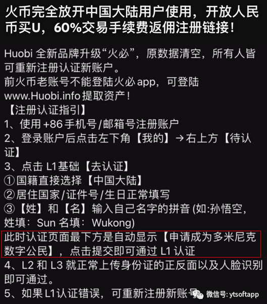 孙老板看着事情发展的方向不对劲,就想了这么个办法:来注册我送你一个其他国家的身份不就好了,这样你做KYC就是别的国家身份,自此火必不再限制国内用户。