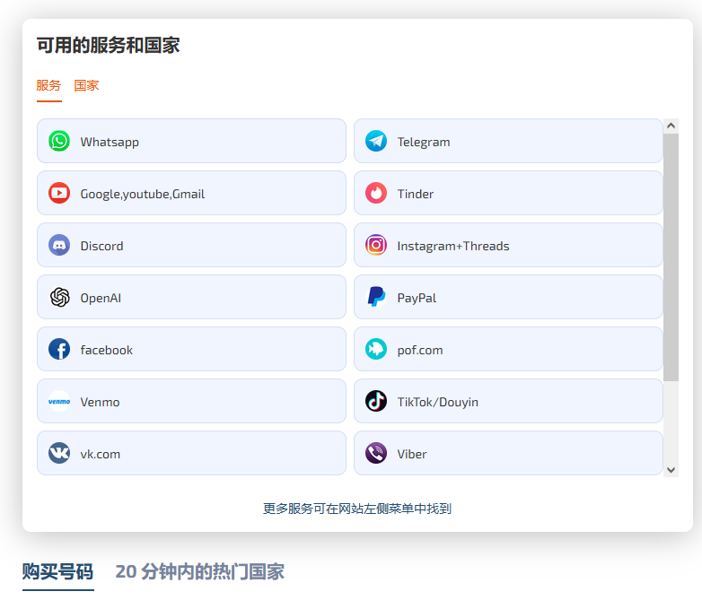 虚拟号码可用于不同时段的账户验证。只需选择适当的服务: