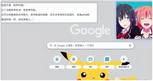 便利贴。你可以把截取的任何图片,剪切板里的图像、纯文本等等转化成图片、或者gif动图